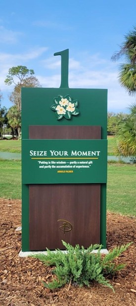 All 18 holes feature new signage with whimsical names and inspirational quotes from Walt Disney or Arnold Palmer. The primary focus introduced "Grumpy's Gauntlet" (holes 14-17), presenting shot selection and strategy challenges to all golfers.